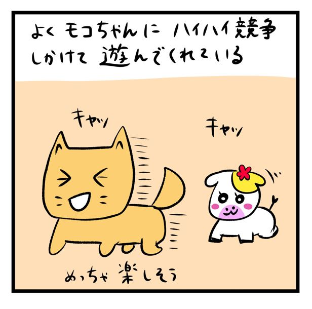 ワン君の時とはまた違った動きをするモコちゃん。