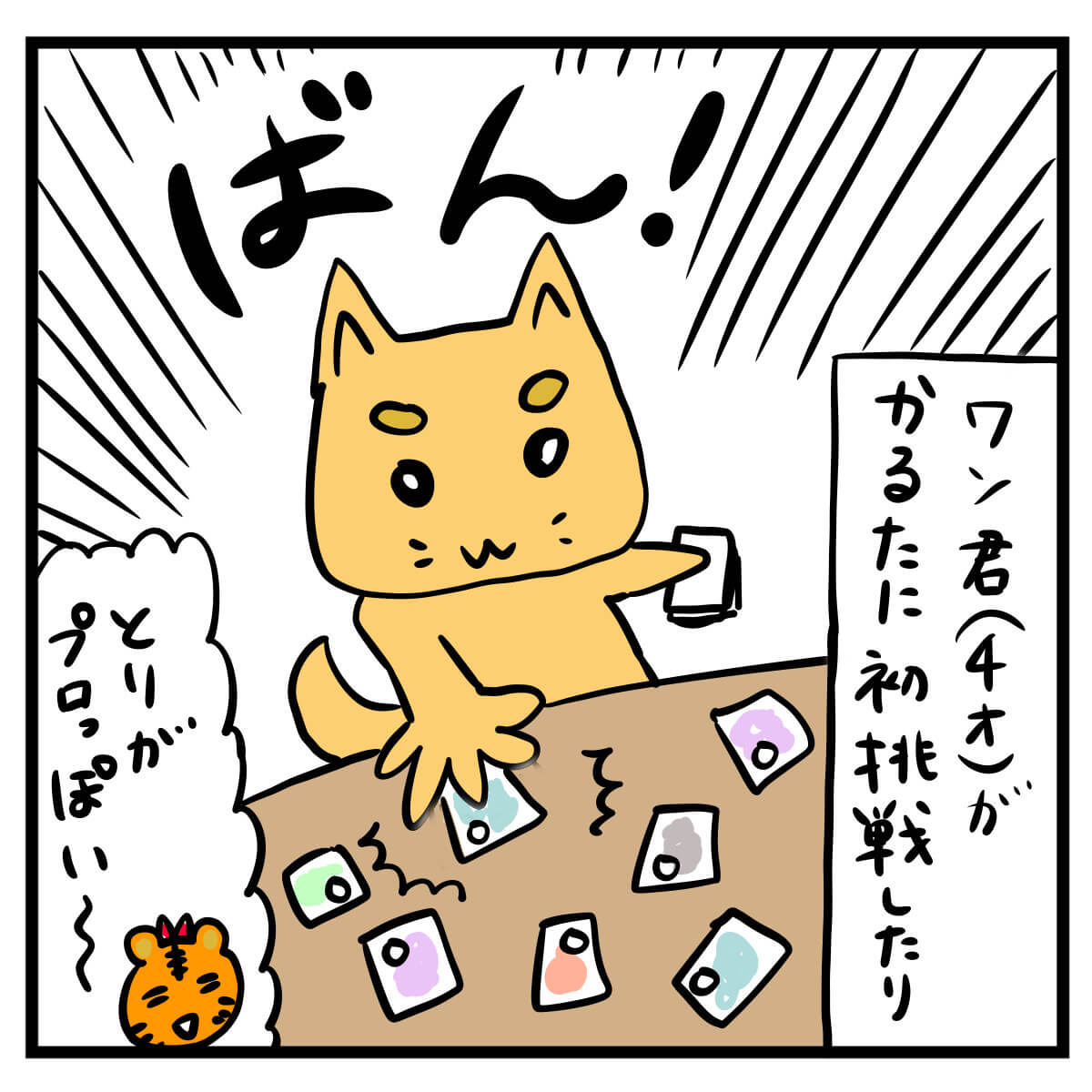 ワン君はじじばば(チューさんの方)から送ってもらったアンパンマンかるたに初挑戦。