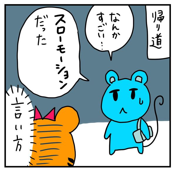 チューさんは動体視力がずば抜けているようで、トラ子のスライディングがスローモーションで見えたとのことです、はい。