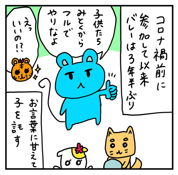 チューさんと交代で試合に出る予定が、私が久しぶりだからと配慮してくれて、彼が子守を担い、私はフルで試合に出れることに。