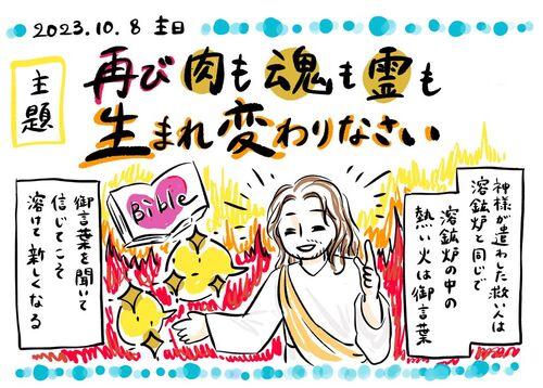 【主題】再び肉も魂も霊も生まれ変わりなさい 【聖句】<エゼキエル書37章1~6節>長いんで省略。 <ヨハネによる福音書3章3節>イエスは答えて言われた。「よくよく言っておく。人は、新たに生まれなければ、神の国を見ることはできない。」(聖書協会共同…